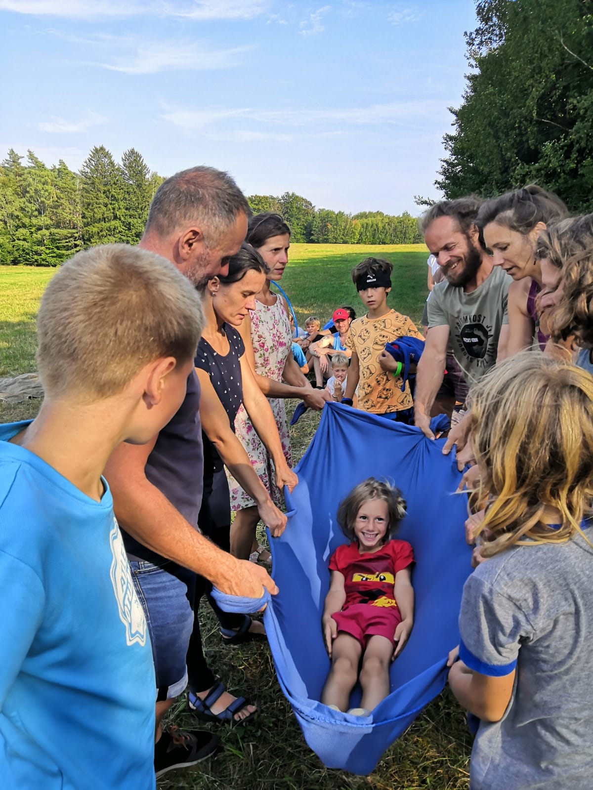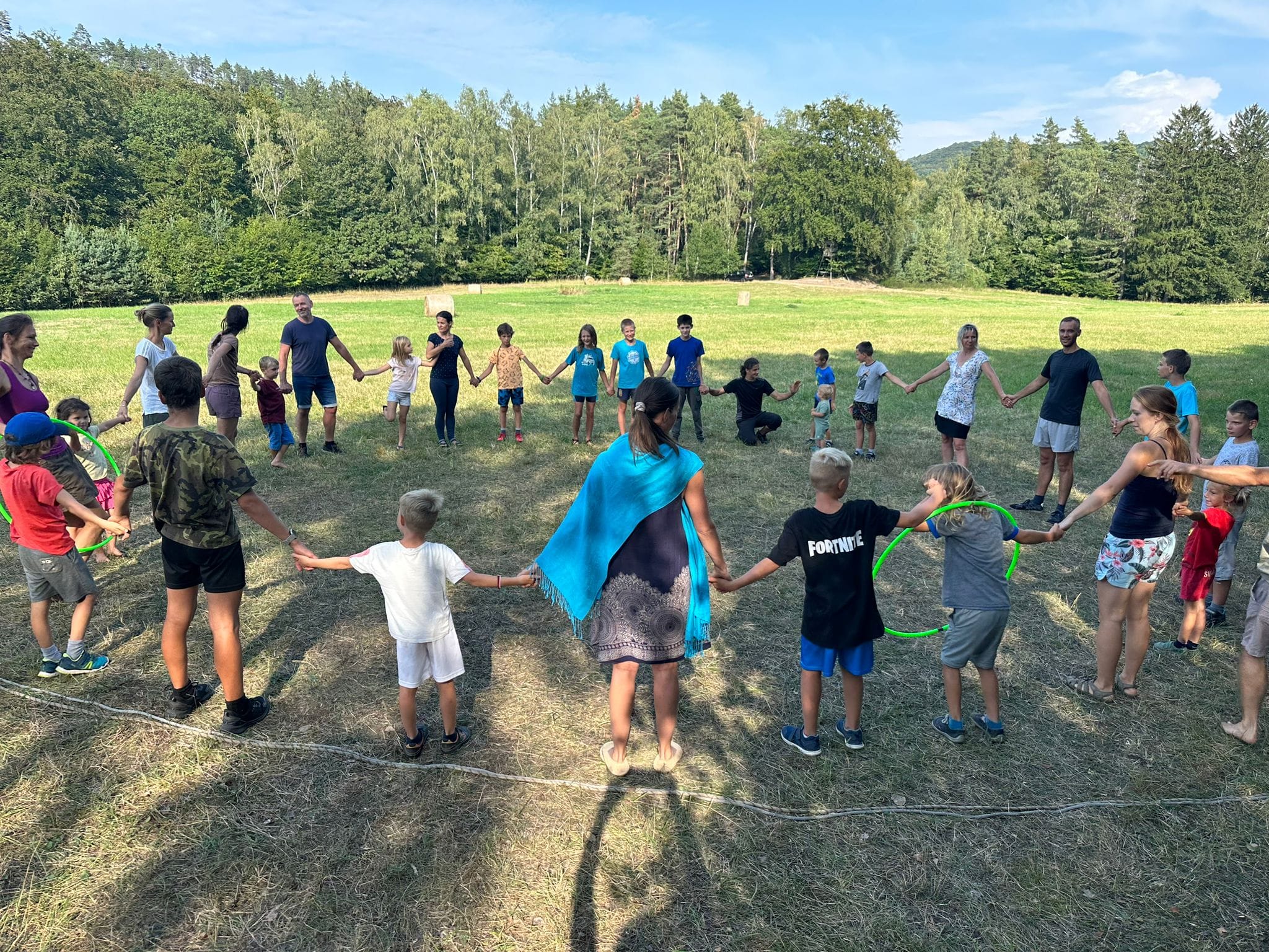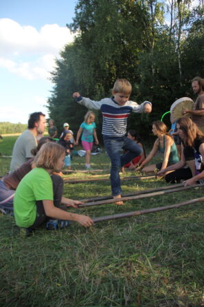 - Program pro celou rodinuRodinné pohybové hry každý den, na posílení důvěry, vůle, odvahy, harmonie a hranic. Tyto hry pracují s rodinnou duší, mužským, ženským, dětským principem. Každý den ráno po snídani 3 hodinový program her v lese nebo na louce a v případě špatného počasí uvnitř. Společné tvoření rodinné vize a jedna noc v lese. Po předešlé přípravě a s výbavou přejdete společně práh do neznáma, spolehnete se jeden na druhého, budete tvořit, bdít, spát, sdílet, utvářet svou budoucnost skrze přítomnost. Příroda vám bude přítelem a průvodcem. Společný kruh rodičů a dětí a hravé sdílení, reflexe. Práce s divadlem a malováním.
